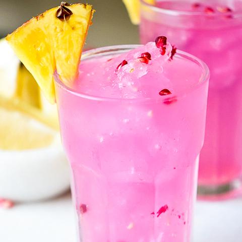 A chilled Champagne with a fresh slices of Pineapples and Pomegranate juice.